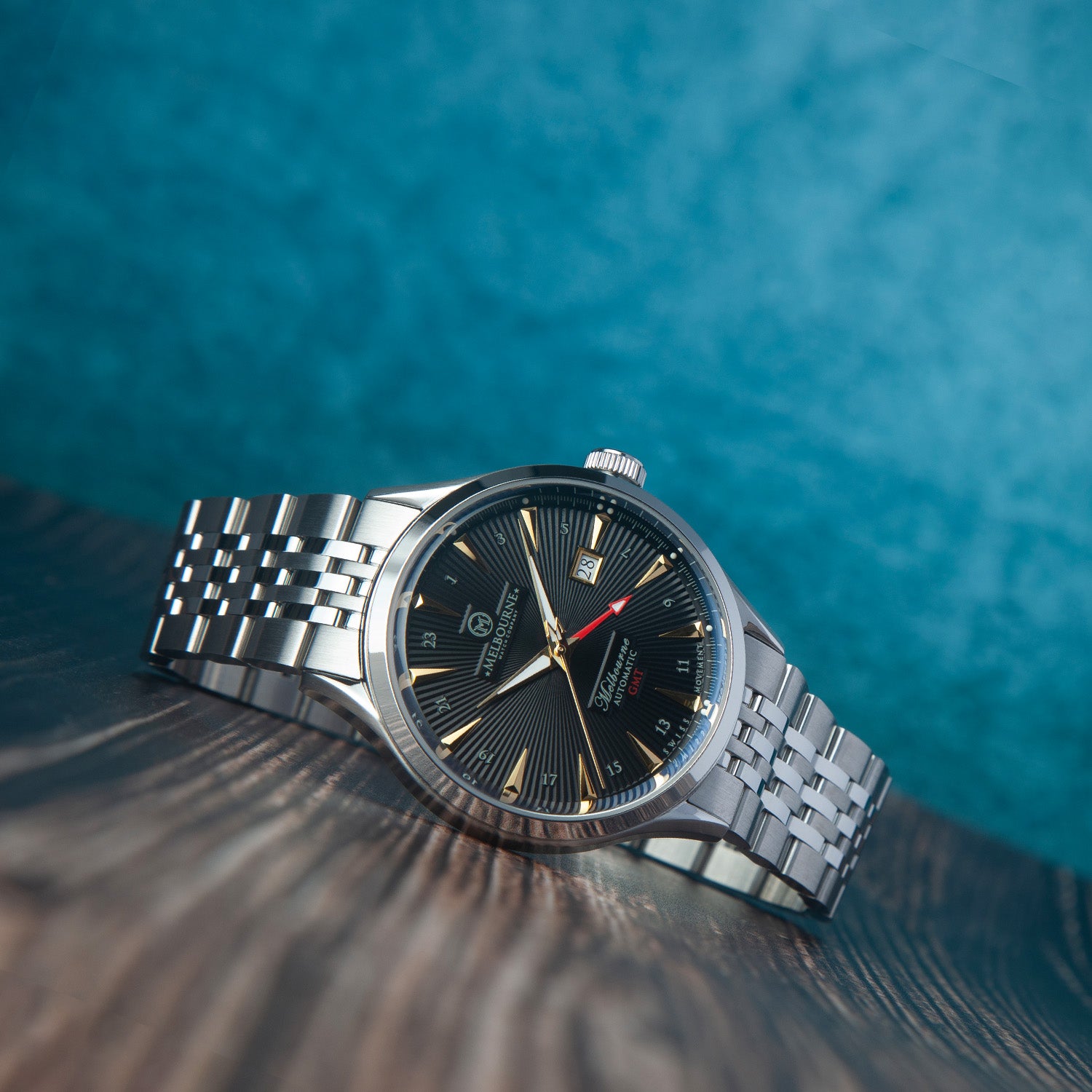 Available in a Day/Date version (Sellita SW220) or a GMT version (ETA 2893-2). Both with 100 meters of Water resistance.