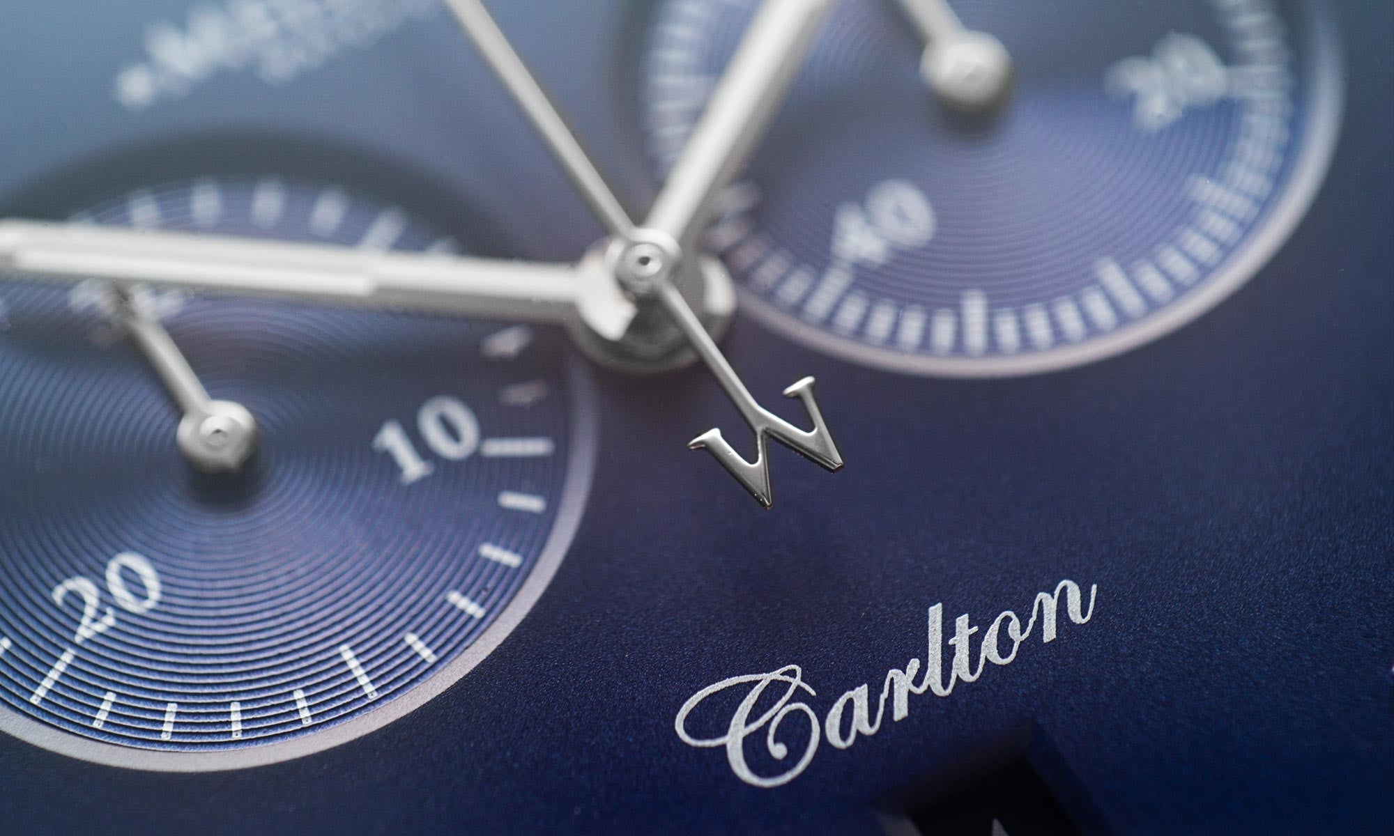 The Carlton is powered by the Swiss Made Ronda Cal. 5021D quartz chronograph movement with a 30-minute stop watch function.