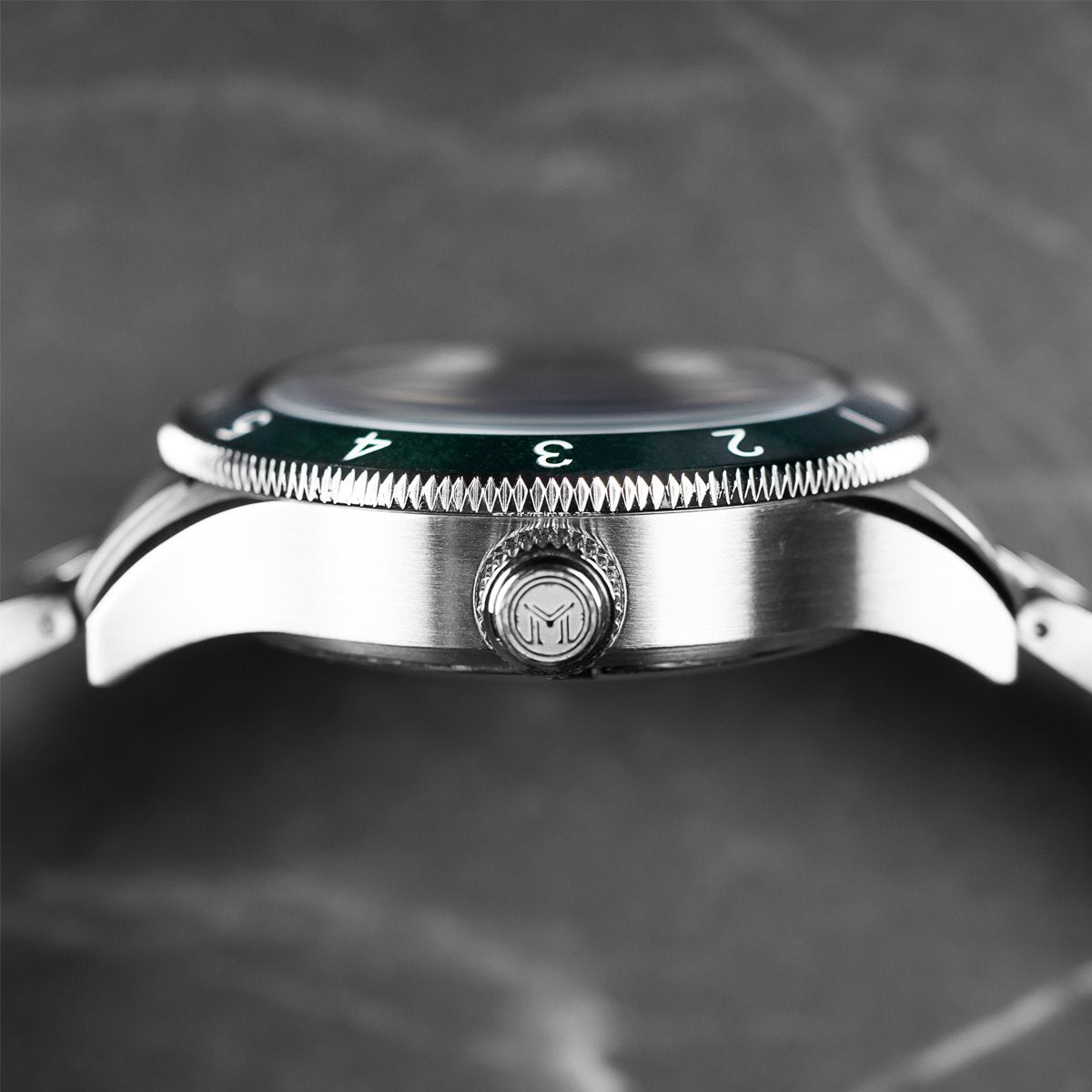 This reliable Japanese movement features a beat rate of 21,600bph and a power reserve of 40 hours with bi-directional winding when on the wrist.
