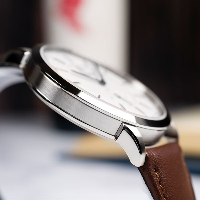 The Flinders Heritage pairs a refined dial with Swiss precision in a slim 7.5mm case, powered by the Ronda 1014 quartz calibre and safeguarded by scratch-resistant sapphire crystal.