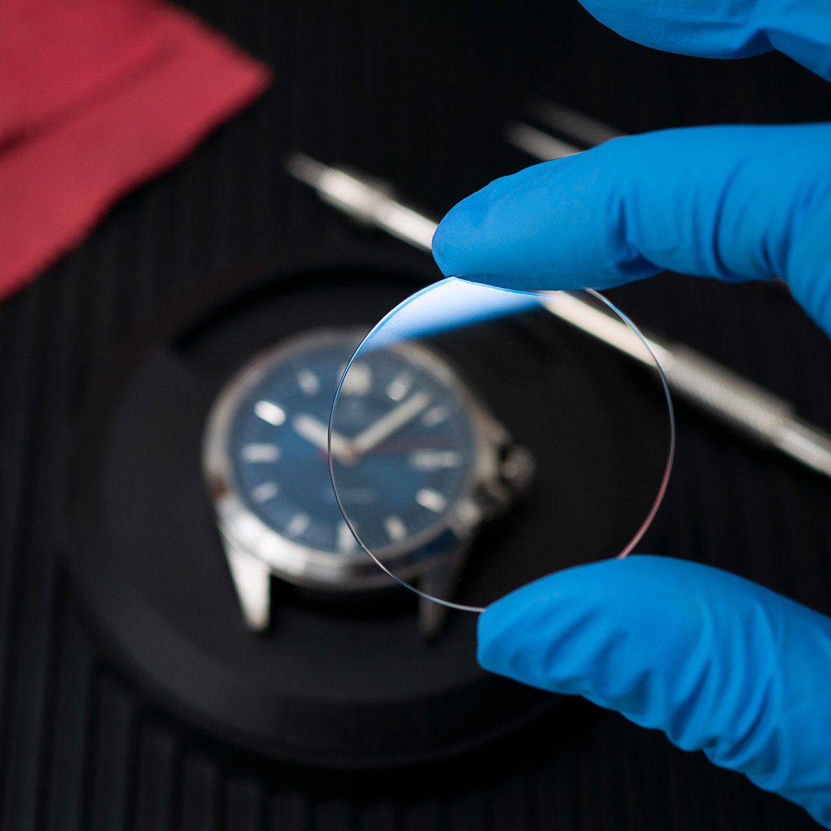 All of our watches are fitted with premium sapphire glass to prevent scratching under most circumstances.