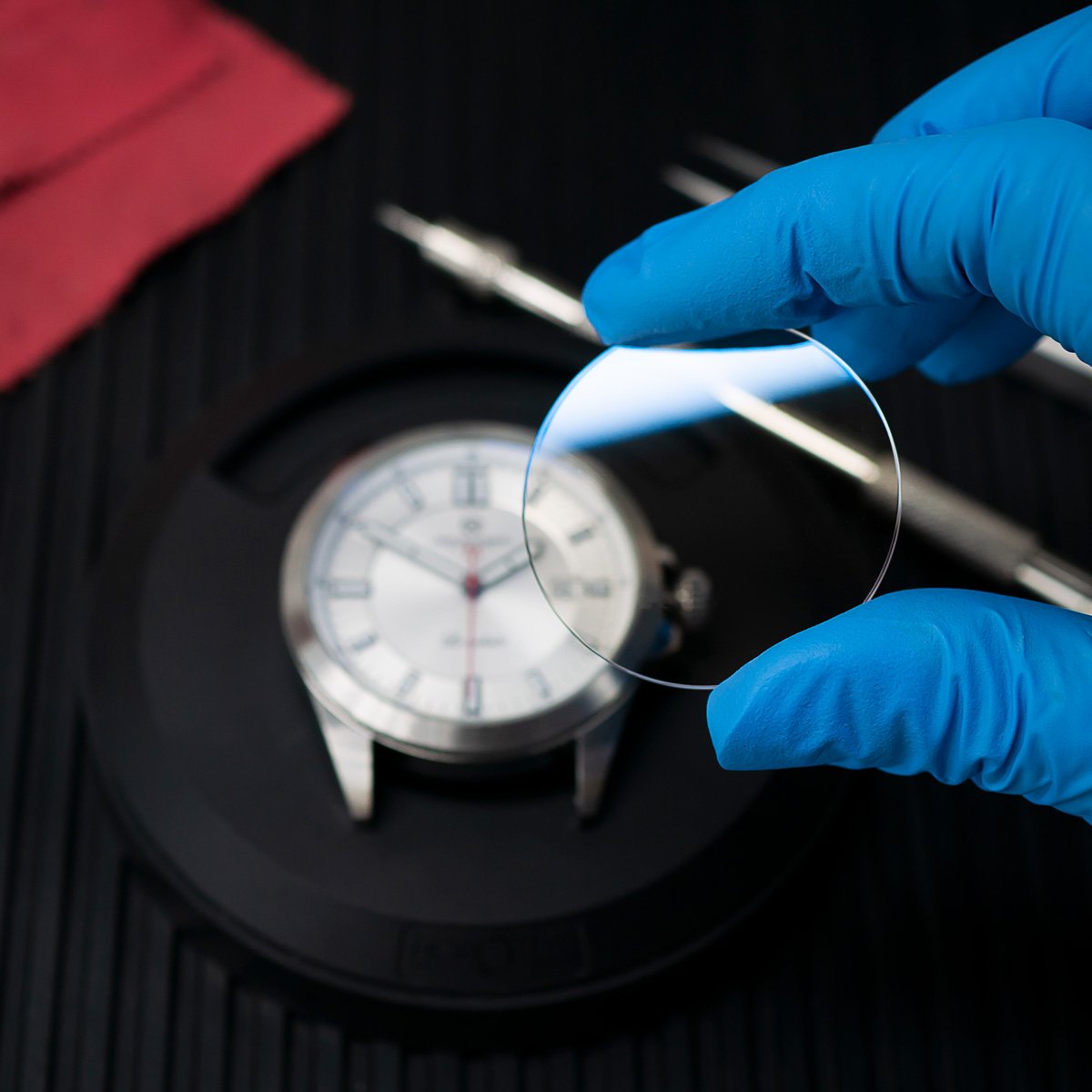 All of our watches are fitted with premium sapphire glass to prevent scratching under most circumstances.