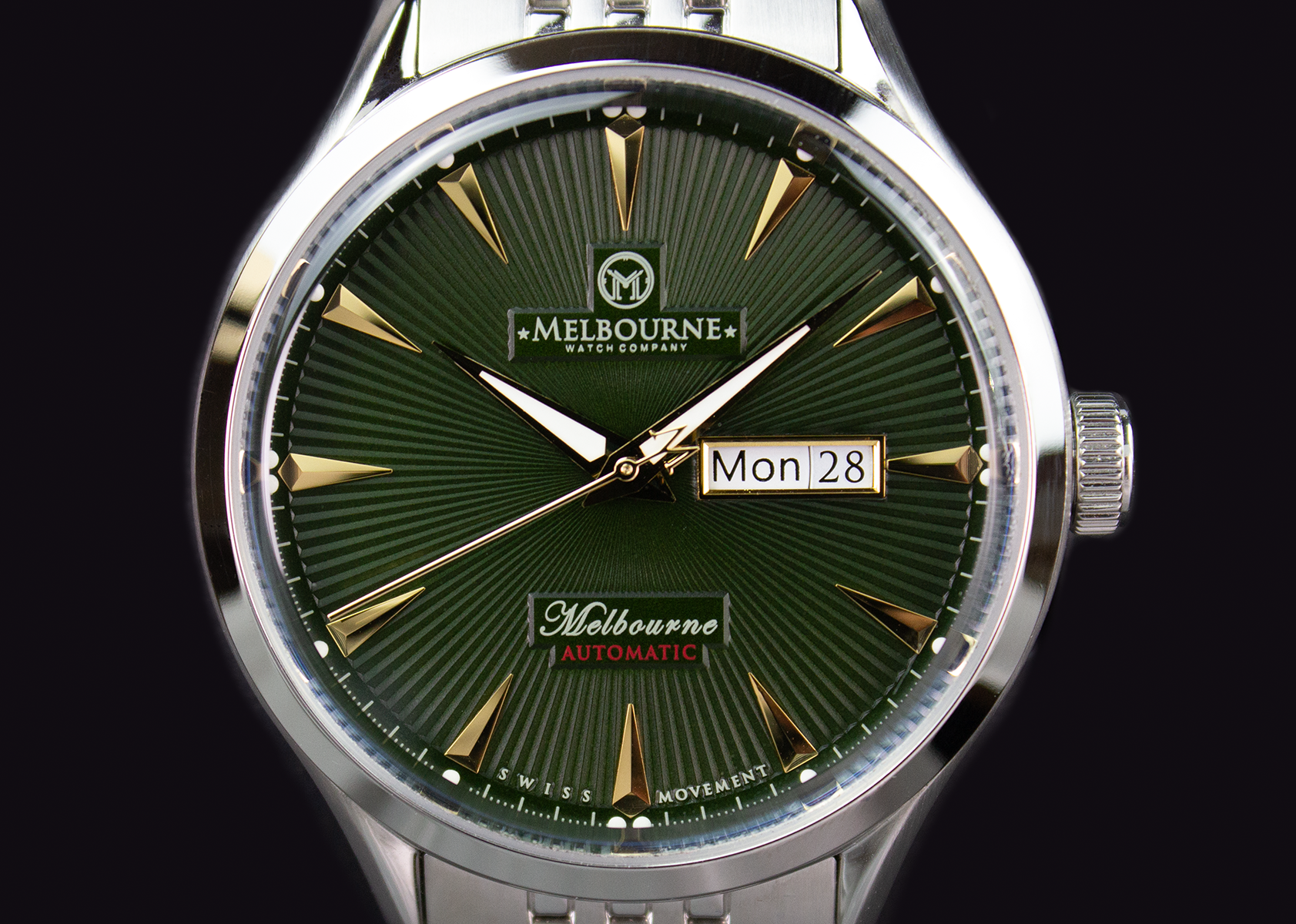 The Melbourne Day/Date is powered by the Sellita SW220 (Swiss) high-beat automatic mechanical movement.