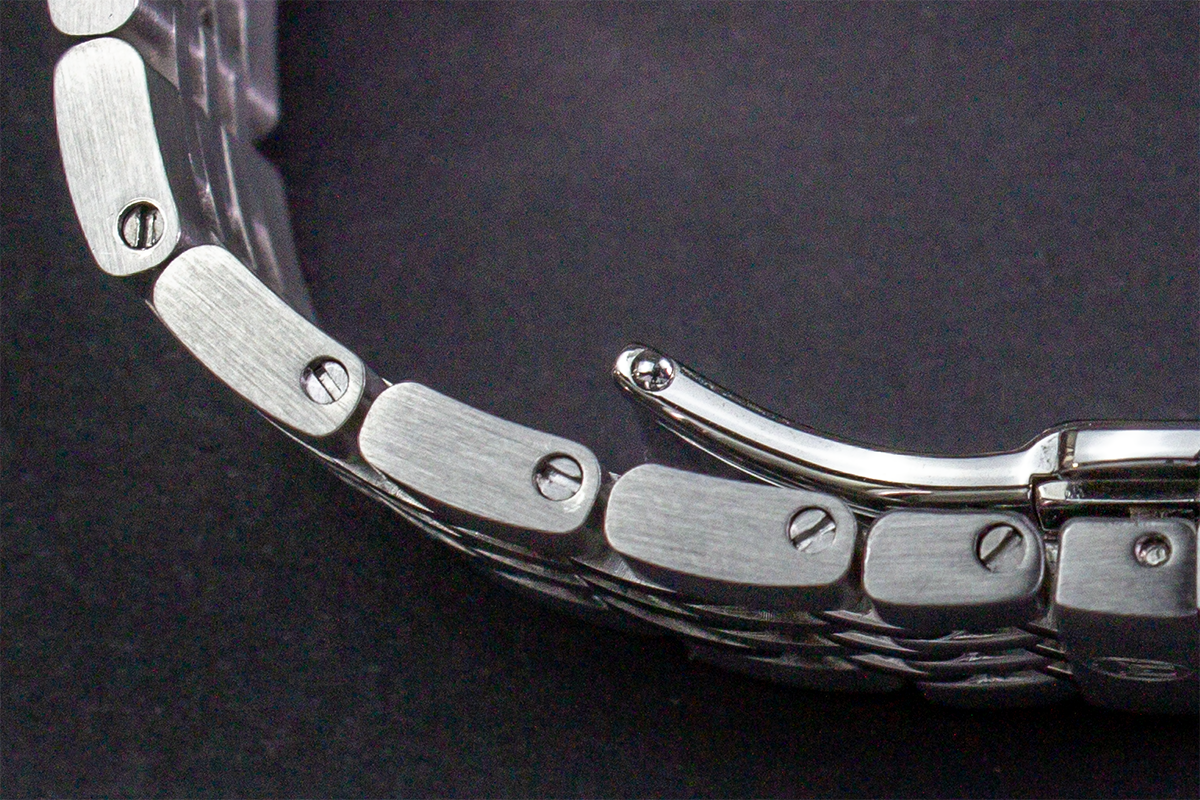 The Melbourne Collection features a 20mm stainless steel bracelet with screw pin links. Screw pins allow for an easy adjustment of the bracelet.