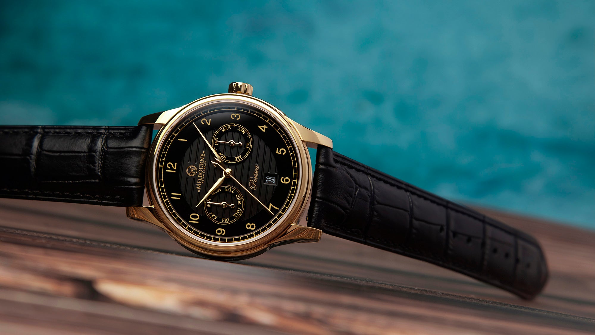 The Portsea collection features a multi-layered dial with a unique CNC cut ceramic main disc.
