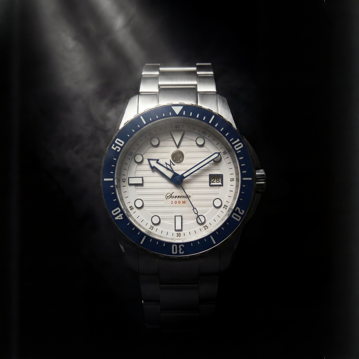 The Sorrento is a study in proportion and restraint. It's minimalist dial architecture is framed within a commanding dive case, creating a timepiece that transitions effortlessly from coastline to city without compromise.